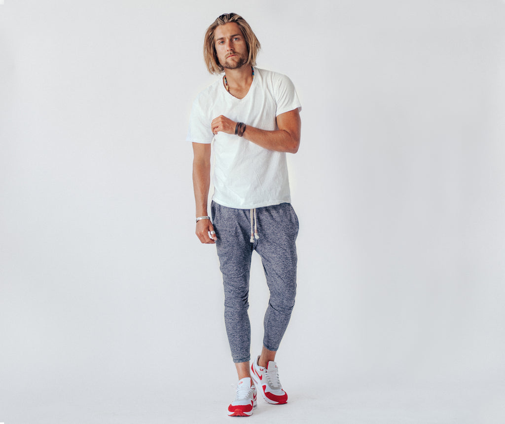 The pants are designed to be fitted in the calves and looser in the thighs giving it a unique and stylish silhouette. The fitted calves allows you to pull the pants up on the calves for a cropped look.